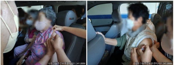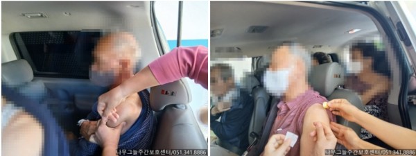 병원 협조로 어르신들은 차량 안에서 안전하게 접종을 진행하셨습니다.