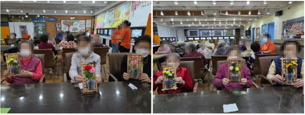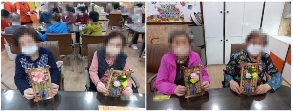 어르신에게는 예쁜 꽃과 화병을 완성해 가며 성취도와 만족감을 느낄수 있고,
