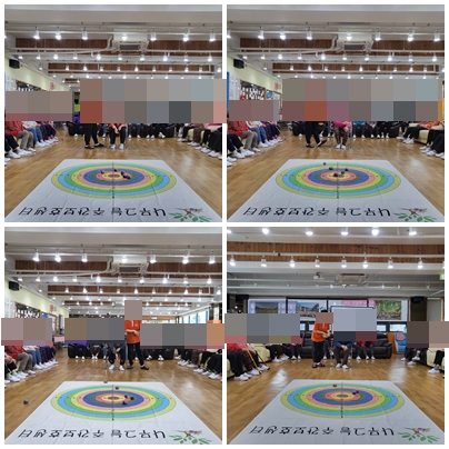 오늘 소개해드릴 신체활동프로그램은 “오자미게임”입니다. 이 프로그램은 바닥에 펼쳐진 커다란 과녁판에