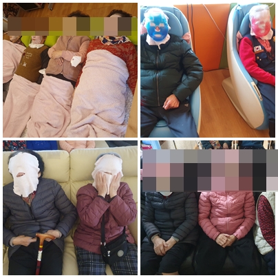 발란스가 흐트러진 어르신들의 피부를 보호해 드리기 위해 마스크팩을 해드렸습니다. 스팀타월과 온열팩을