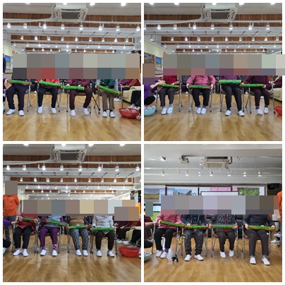 게임 판을 어르신들에게 하나씩 나눠드립니다. 게임판을 나눠 받은 어르신들은 정해진 시간동안 방울공을