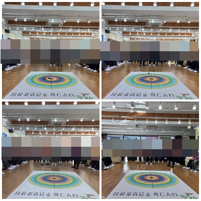 오늘 소개해드릴 신체활동은 “오자미게임”입니다. 이 프로그램은 바닥에 펼쳐진 커다란 과녁판에