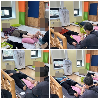 어르신들의 건강지킴이의 가장 큰 도움이 될 것으로 생각됩니다. 오전에 목욕으로 나른해진 몸에 발 마사지까지 더해지니