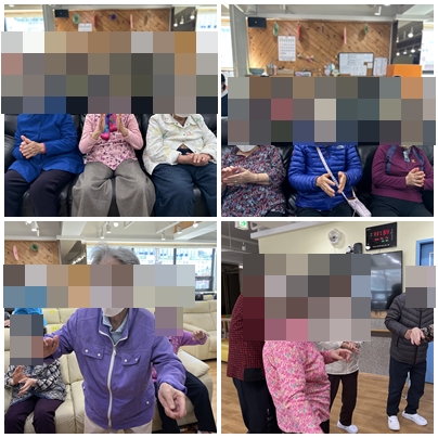 스트레칭으로 몸을 움직이는 수업입니다. 오늘 수업에서는 어르신들이 좋아하시는 노래에 맞춰