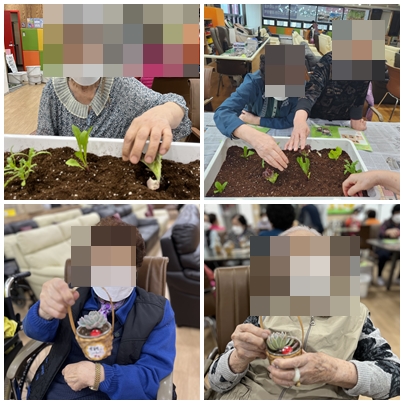 심어 주고 텃밭화분도 어르신들 솜씨로 예쁘게 꾸며주었습니다. 우리 어르신들은 집