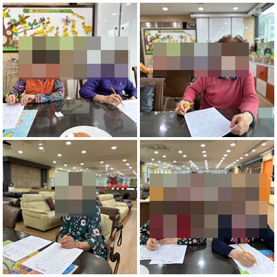 우리 어르신들은 워크북을 처음 받으시곤 어렵다하셨지만 차근차근 생각하며 풀어나가셨습니다. 스스로 다 풀어내신