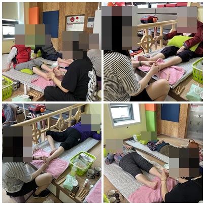 지난달은 3층 어르신들 진행하였고 오늘은 2층 어르신들 마사지를 진행하였습니다.