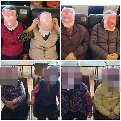 오전 시간에는 추운겨울을 이겨내느라 거칠어지신 우리 어르신들의 촉촉한 피부 미용을 위해 “마스크팩”을