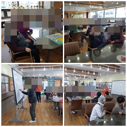 갈려 하셨는데 선생님이 불러주는 힌트를 듣고 어르신들이 곰곰이 고민하시며 맞춰 나갔습니다.