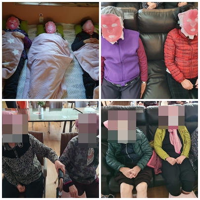 오전 시간에는 추운겨울을 이겨내느라 거칠어지신 우리 어르신들의 촉촉한 피부 미용을 위해 “마스크팩”을