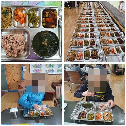 생님들이 가위로 작게 잘라 어르신들 드시기 좋게 준비해드렸습니다. 어르신들의 영양 가득한 식단을