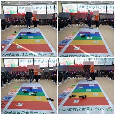 이 게임은 바닥에 놓여 있는 숫자판에 신발을 멀리 던져서 점수를 획득하는 활동으로, 대. 소근육 운동