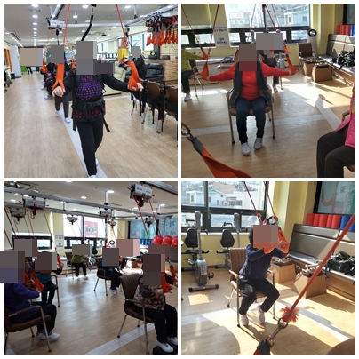 슬링운동은 어르신들에게 신체를 견인시켜주어 체중을 절감시켜줌으로써 관절의 부담을