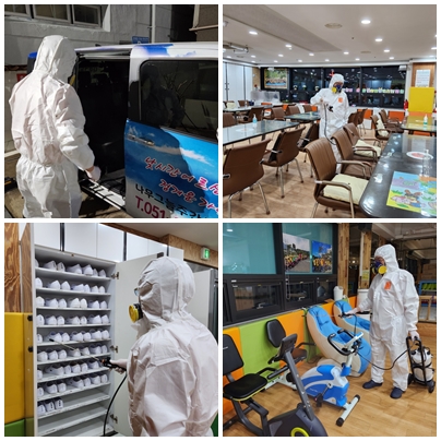 센터 방역을 시작합니다. 코로나19 방역에 적합하고 안전한 용품으로 센터 곳곳을 잘 알고