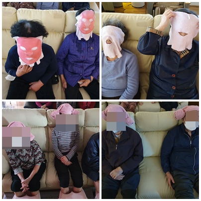오전시간에는 우리 어르신들의 피부 미용을 위해 “마스크팩”을 해드렸습니다.