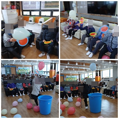 풍선을 테니스라켓을 사용하여 퉁~퉁~ 하고 재밌게 쳐보고 풍선을 날려보기도 하고 짝을 지어 주고받기도 하셨습니다.