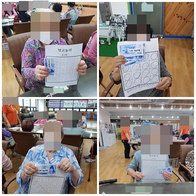 큰 소리로 빙고를 외치시는 어르신들을 보며 게임을