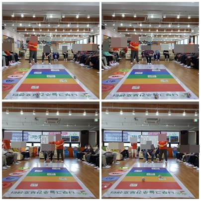 어르신들은 원하시는 곳에 공을 넣기 위해 한손 또는 두손으로 열심히 공을 굴려 주셨습니다.