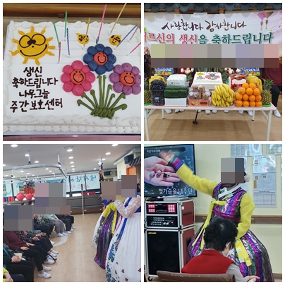 어르신들의 소감말씀도 한마디씩 들어 보고 다함께 생일 축하곡도 불러드렸습니다. 생신 잔치가