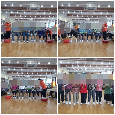 나눠 받은 어르신들은 정해진 시간동안 방울공을 게임판을 통해 이동시켜 줍니다.