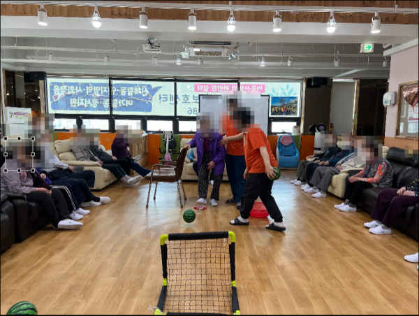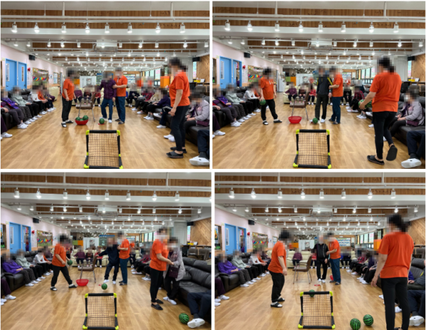축구는 어르신들께서 수박 공을 축구골대 안을 향해 뻥~ 하고 시원하게 차주시는 프로그램으로