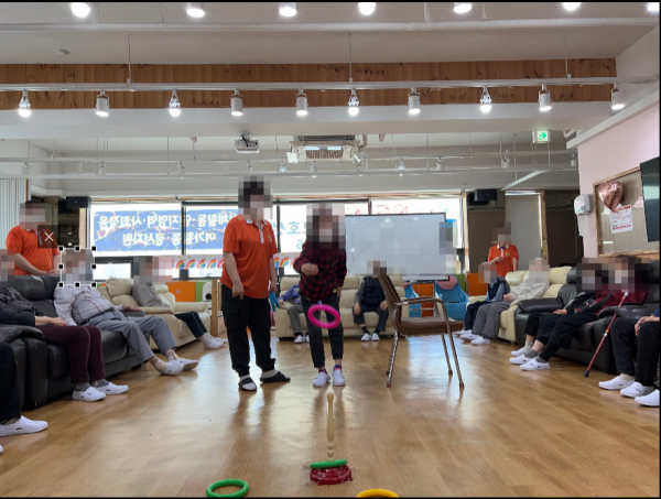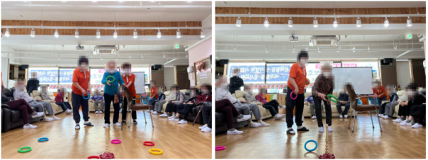 오늘은 신체활동으로 고리던지기를 해보았습니다.