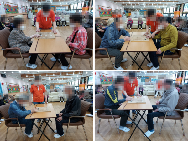 오늘은 신체활동 프로그램으로 "알까기"를 진행해보았습니다.