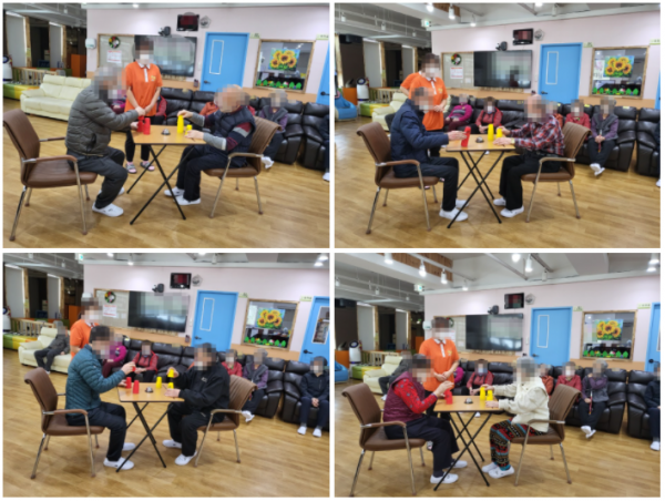 신체활동 프로그램으로 컵옮기기 게임을 진행했습니다.