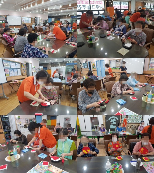 어르신들이 클레이를 꼼꼼하게 채워서 완성하였습니다.