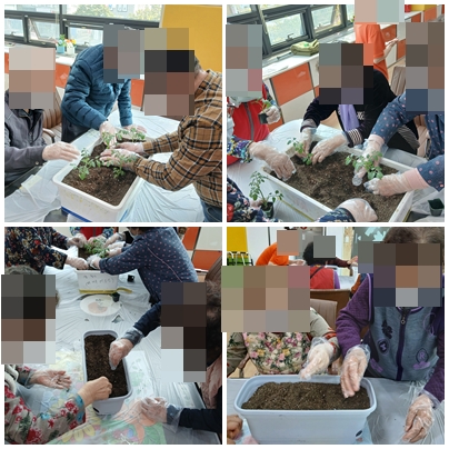 지난주 어르신들과 함께 식목일을 맞아 큰 화분에는 방울토마토 모종을, 작은 화분에는 봉선화 씨앗을 심어보았습니다. 방울토마토 모종과 봉선화 씨앗을 심는 활동은 어르신들에게 정서적 안정과 사회적 상호작용에 큰 도움이 되고 있습니다.