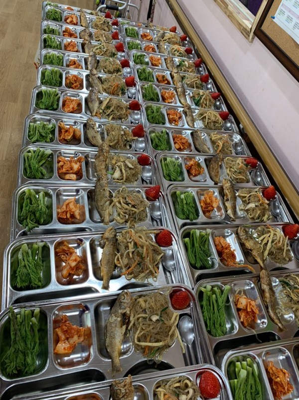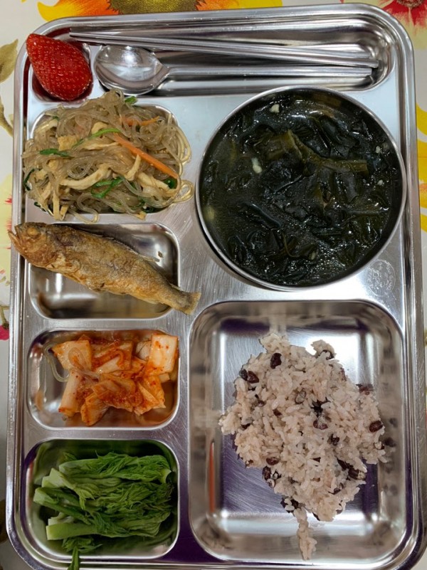 미역국과 잡채 굴비로 맛있는 식사를 준비하였습니다.