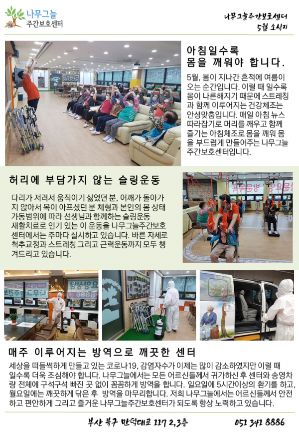 나무그늘주간보호센터 5월 셋째주를 소식지로 만나보세요 페이지 정보 작성자 관리자 작성일20-05-18 15:31 조회2,255회 댓글0건 관련링크 이전글 다음글 목록 본문 나무그늘주간보호센터 5월 셋째주 소식을 소식지로 만들었습니다. 소식지는 매주 월요일에 올라옵니다.^^ 댓글목록 등록된 댓글이 없습니다. 이전글 다음글 목록