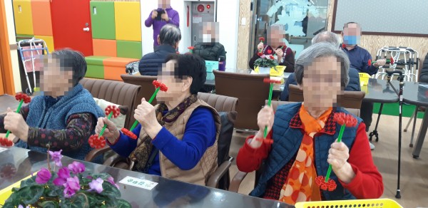 마이크를 만들고 크게 노래도 부르시고 선생님부터 시작해서 어르신들 모두 자기소개도 진행하였습니다.