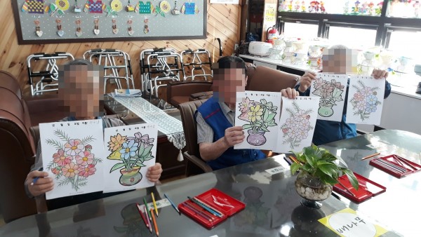 작품이 완성 된 후 어르신들 아주 잘 그렸다며 멋진 포즈로 사진도 찍고 웃고 계셨습니다~^^