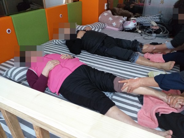 한달에 한번씩 발마사지 동호회에서 자원봉사를 오십니다.