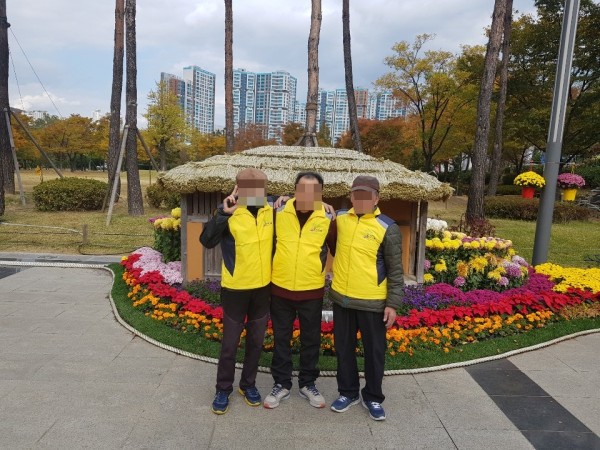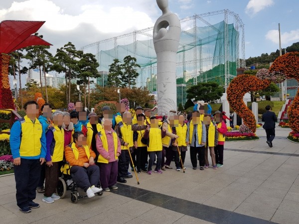 여러 가지 모양으로 장식된 국화를 보시며 평생 처음 이렇게 많은 국화꽃을 보신다며 감탄을 하시기도 하셨습니다.