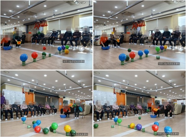 이 활동은 공을 따라 눈과 손이 움직이므로 눈과 손의 협응력, 팔의 대 근육 발달, 집중력 향상에 도움이 되는 프로그램입니다.