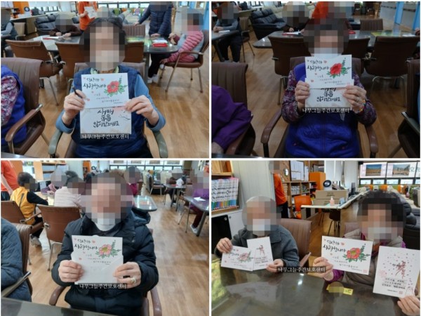 뒷면에는 편지 쓰기 칸이 준비 되어져 있어 어르신들이 가족들에게 편지를 쓰는 시간을 가져 보았습니다.
