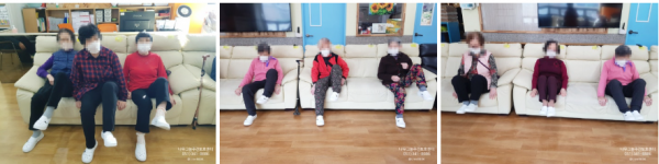 서서 체조를 하실 수 있는 어르신들은 일어나셔서 국민체조 구령에 맞춰서